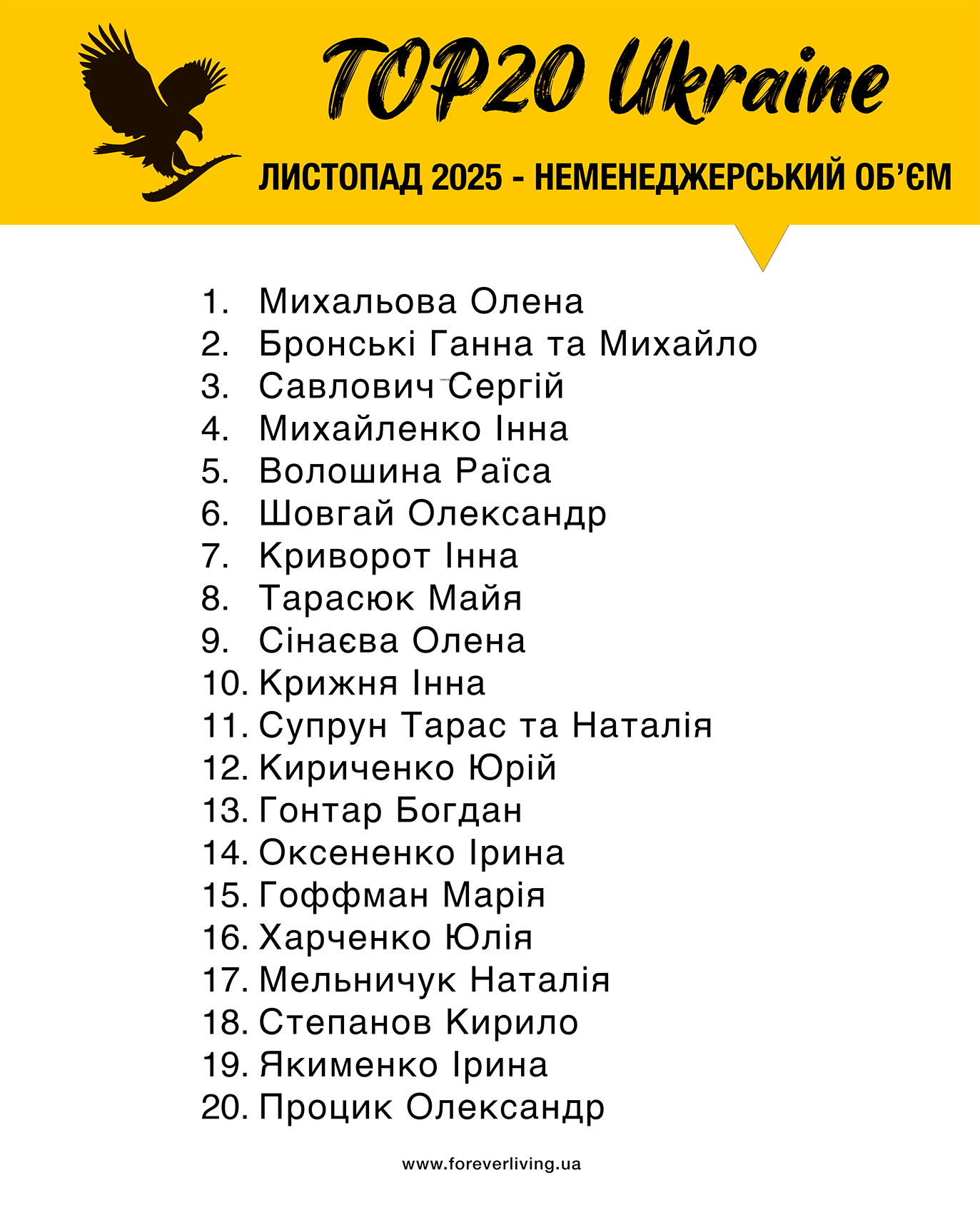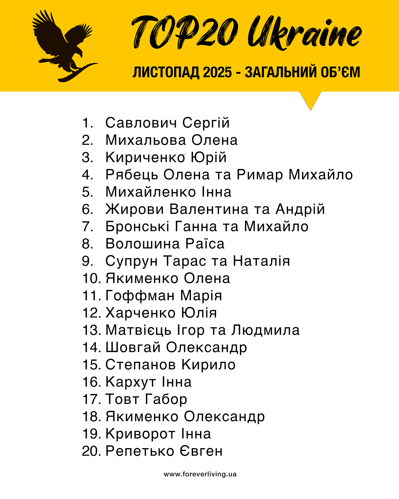 ТОП 20-ки рейтинг України за листопад 2025 року