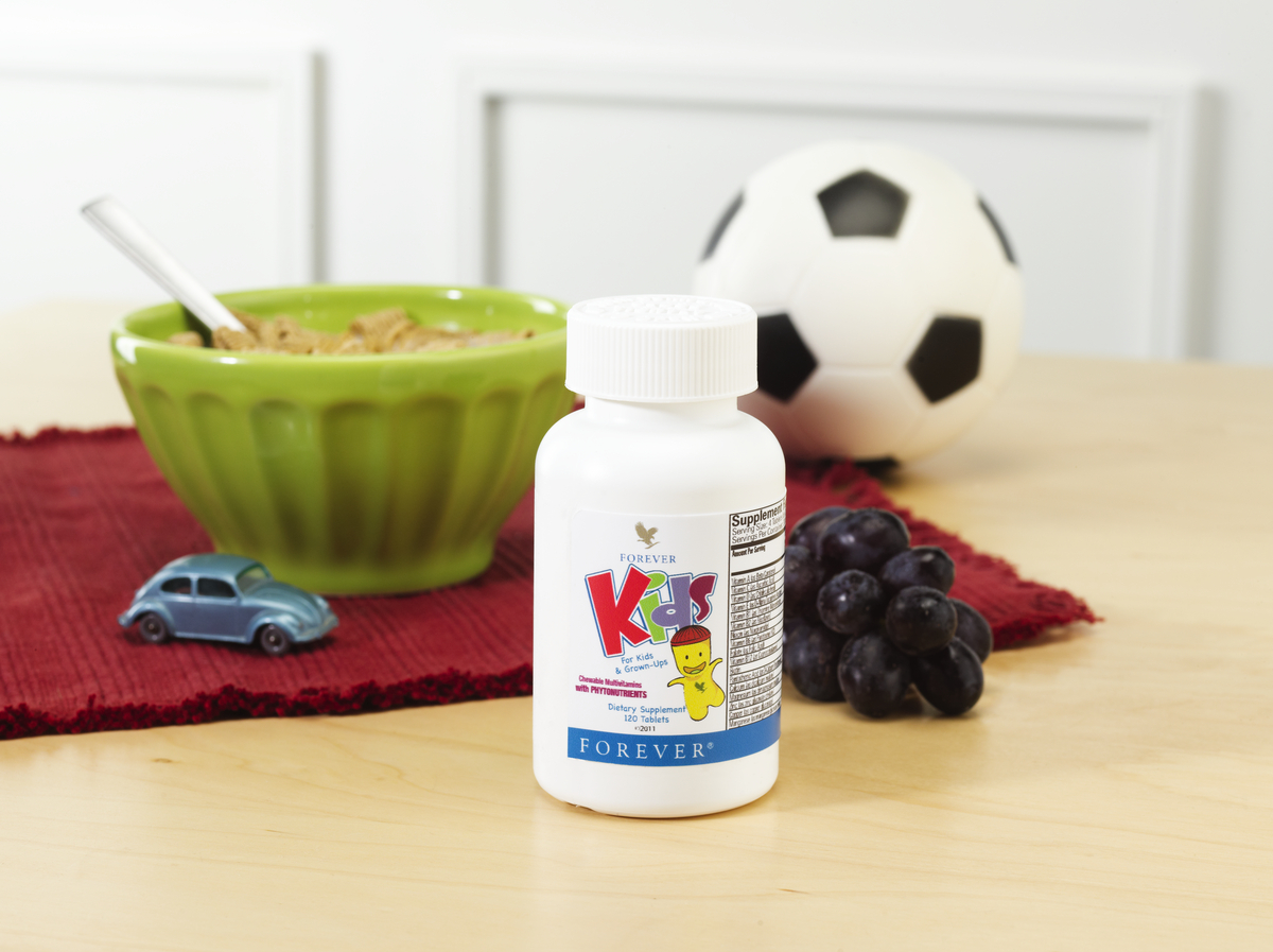 Смачний, сучасний мультивітаміний комплекс для дітей. Уявіть, що ви даєте своїм дітям всі вітаміни і мінерали, які потрібні їхньому зростаючому організму, у вигляді чудової цукерки, без штучних ароматизаторів, барвників та консервантів. Вам навіть не потрібно буде нагадувати своїм дітям, що вони повинні приймати вітаміни, тому що вони будуть самі просити Форевер Кідз! Цей полівітаміний комплекс спеціально розроблений для задоволення потреб дітей в поживних речовинах, поєднуючи вітаміни, мінерали та фітонутрієнти. Вітамін С допомагає підтримувати нормальну функцію імунної системи, а вітамін D3 сприяє нормальному росту і розвитку. Залізо і вітамін B12 сприяють підтриманню здорової когнітивної функції та розвитку. Ми ще більше збільшили поживну цінність, включивши комплексну суміш фітонутриєнтів, взятих з брокколі, шпинату, моркви, буряка і 16 інших фруктів і овочів. Форевер Кідз безпечний для дітей від трьох років і старше (так, вони відмінно підходять і для дорослих!) для живлення зростаючих організмів і умів. Ваші діти будуть з нетерпінням чекати на ці смачні вітаміни, і ви будете спокійні, знаючи, що вони отримують всі поживні речовини, яких потребує молодий організм. Переваги • Підтримує здоровий ріст і розвиток • Основні вітаміни, мінерали та поживні речовини для зростаючого організму • Сприяє нормальній роботі імунної системи • Сприяє здоровій когнітивній функції • Без додавання цукру, штучних ароматизаторів, консервантів або штучних барвників • Не містить глютену ВМІСТ УПАКОВКИ 120 таблеток